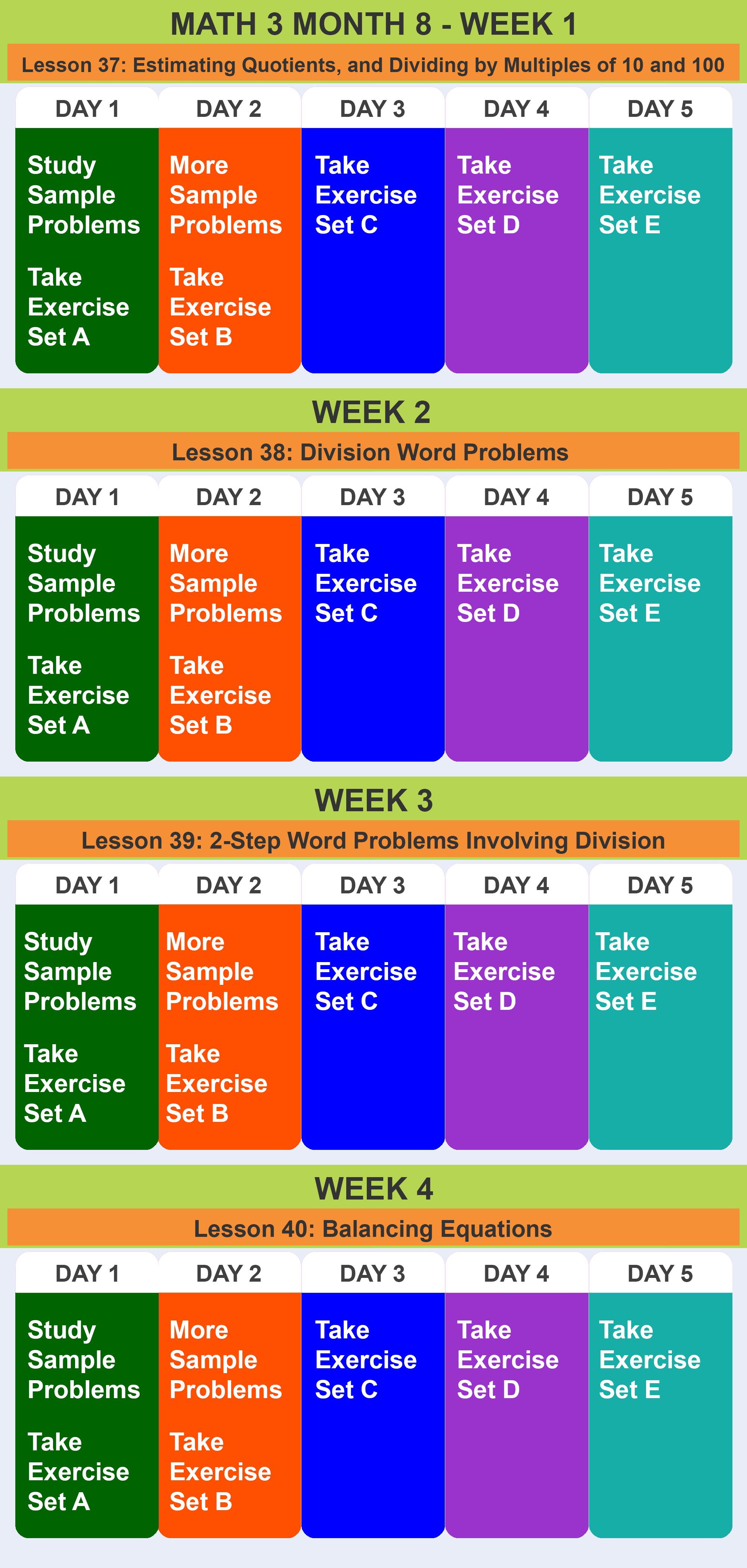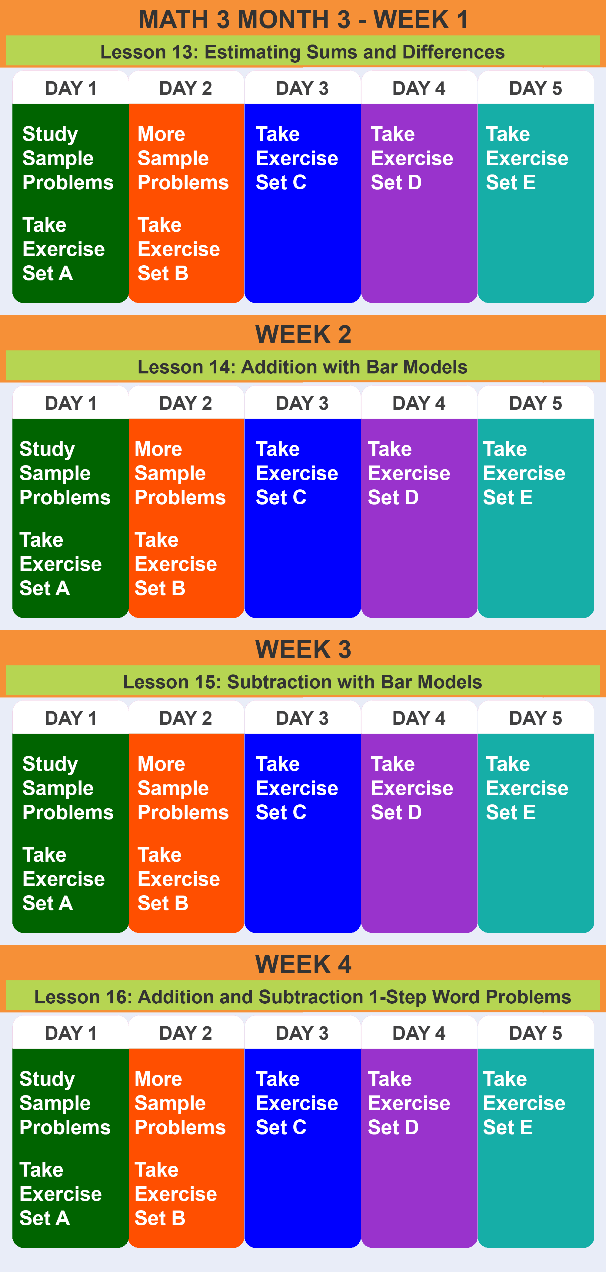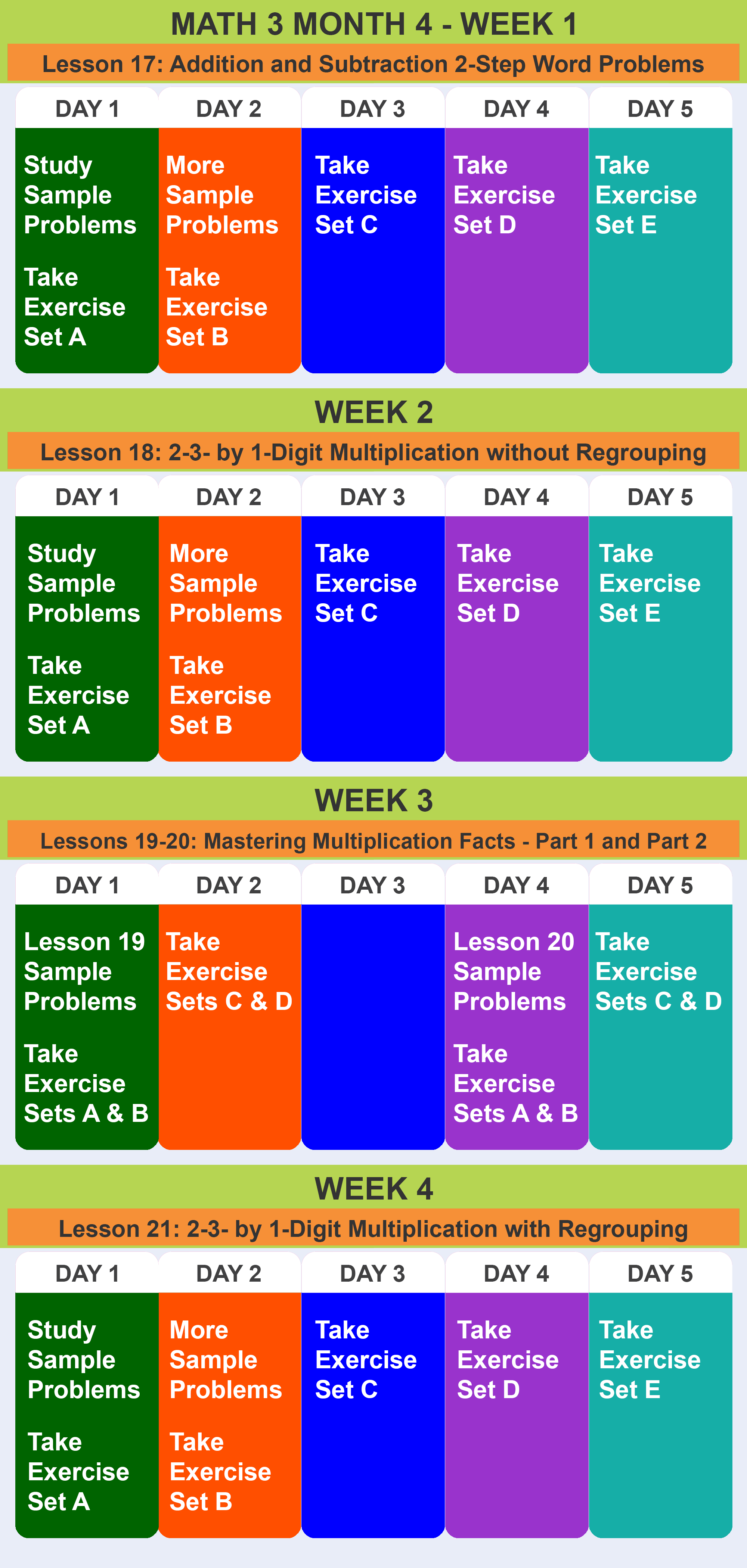 Math 3 Recommended Schedule